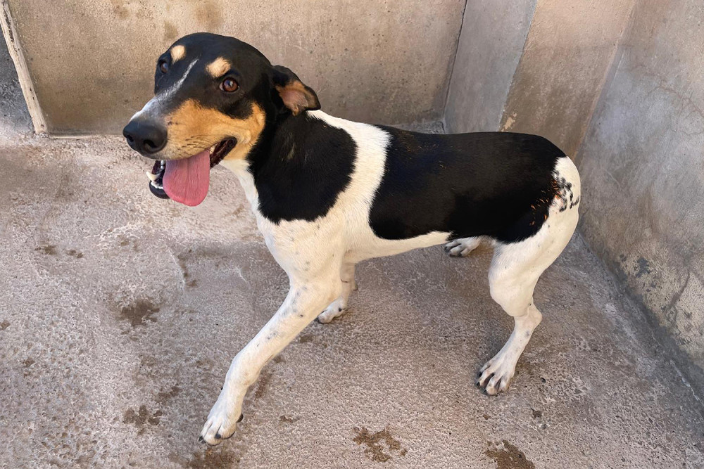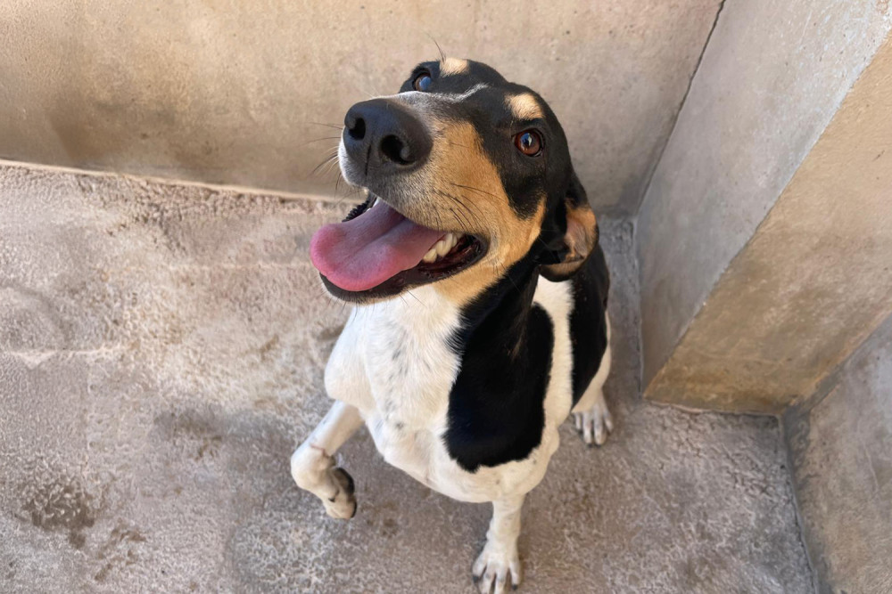 Dorothy es una hembra mestiza de Bodeguero que llegó al refugio el 17 de octubre de 2025. Tiene el típico carácter de su raza, es inquieta, nerviosa e intensa. Todo ello se acrecienta en el refugio, así que Dorothy necesita encontrar pronto una familia para salir de aquí, tranquilizarse y empezar a disfrutar de la vida como debe hacerse. Con la correa pasea bastante bien y se relaja más. Durante los paseos busca acercarse a los demás perros para conocerlos y no hace malos gestos a nadie.