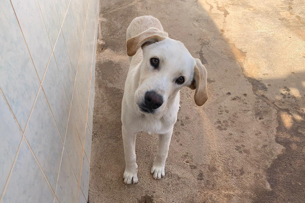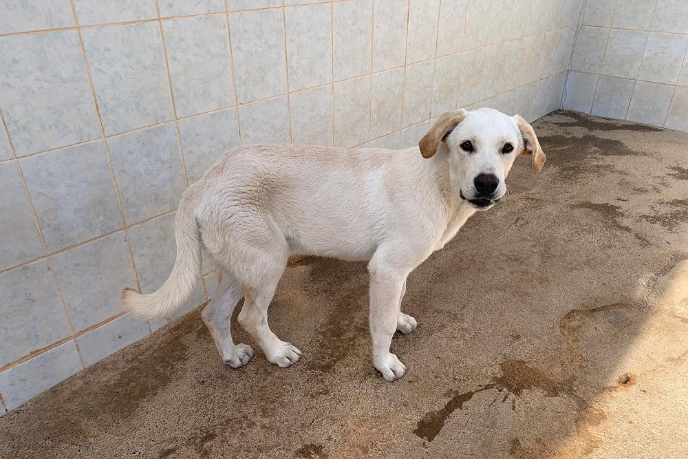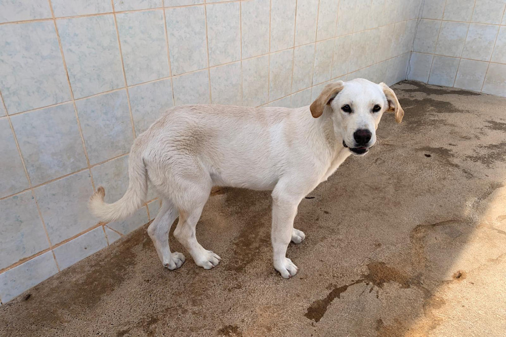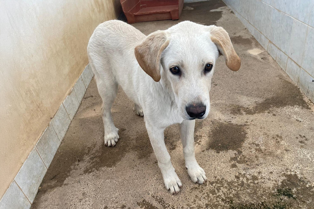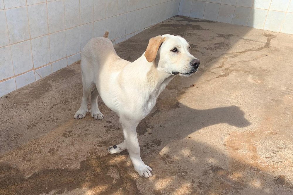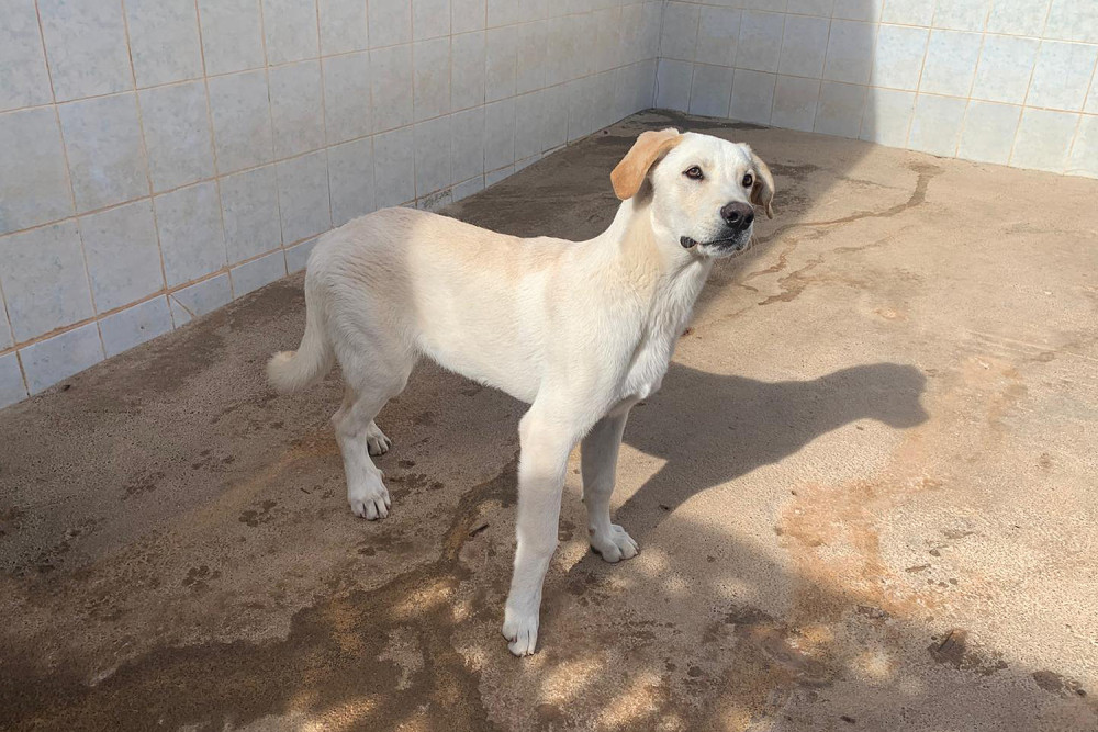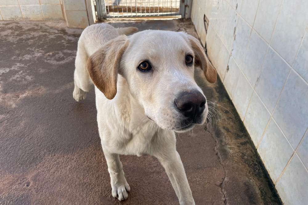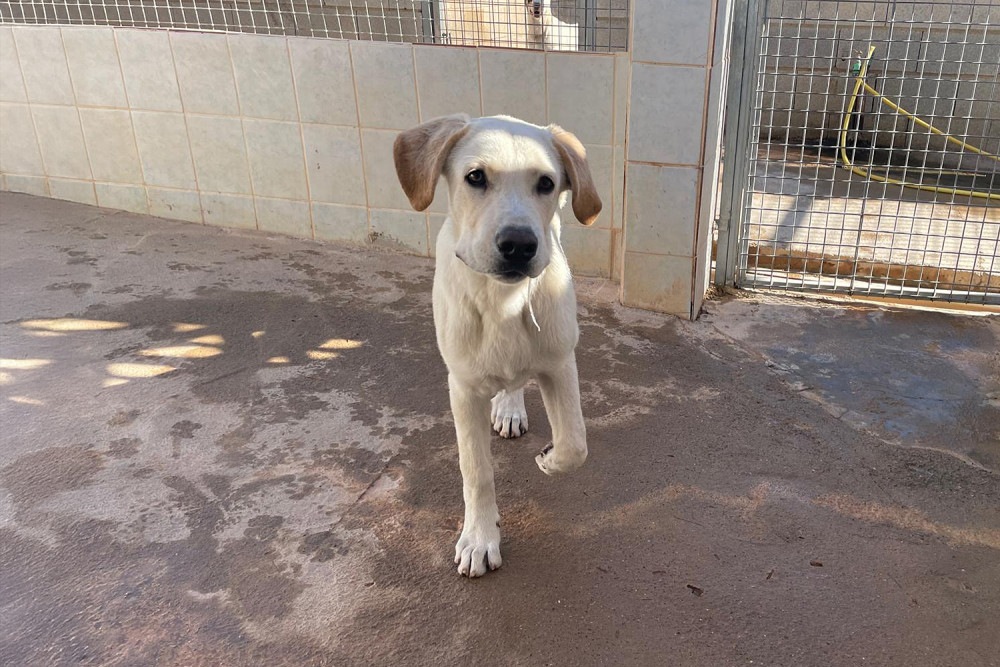 Taray es el supuesto hermano de Alfalfa y, como ella, llegó al refugio el 1 de noviembre de 2025. Como ya os dijimos ambos fueron encontrados juntos malviviendo en la calle. Es un cachorro grande, bueno, cariñoso, de capa crema y orejas gachas, que está deseando encontrar una familia para no seguir creciendo en el refugio. Si te gustan los perros grandes tanto Taray como Alfalfa te van a encantar.