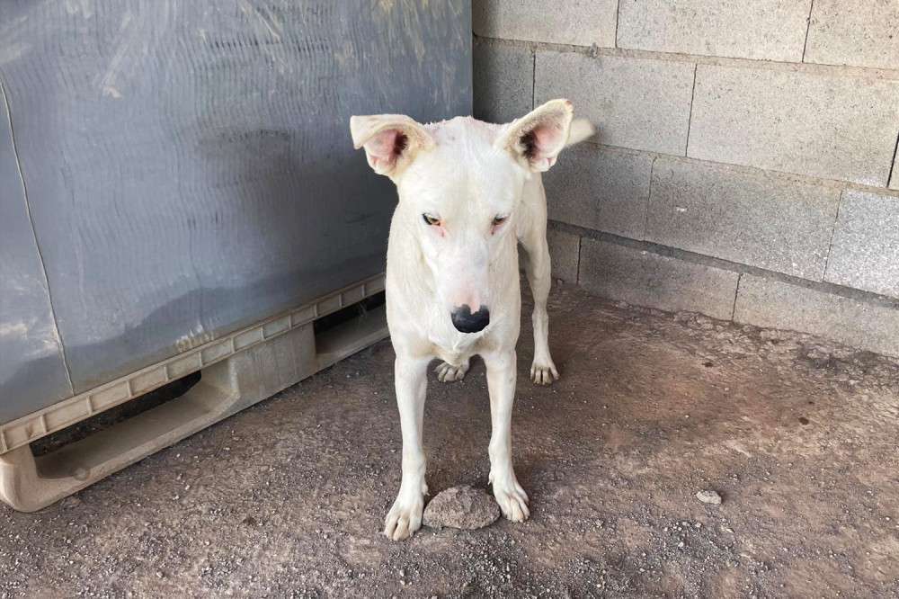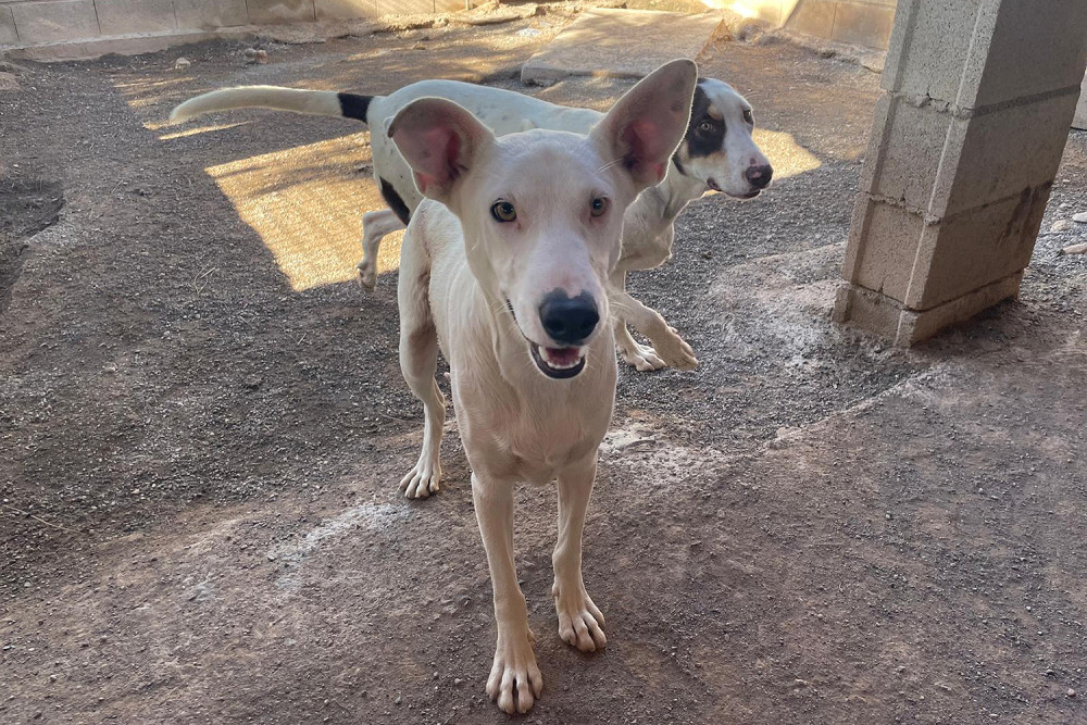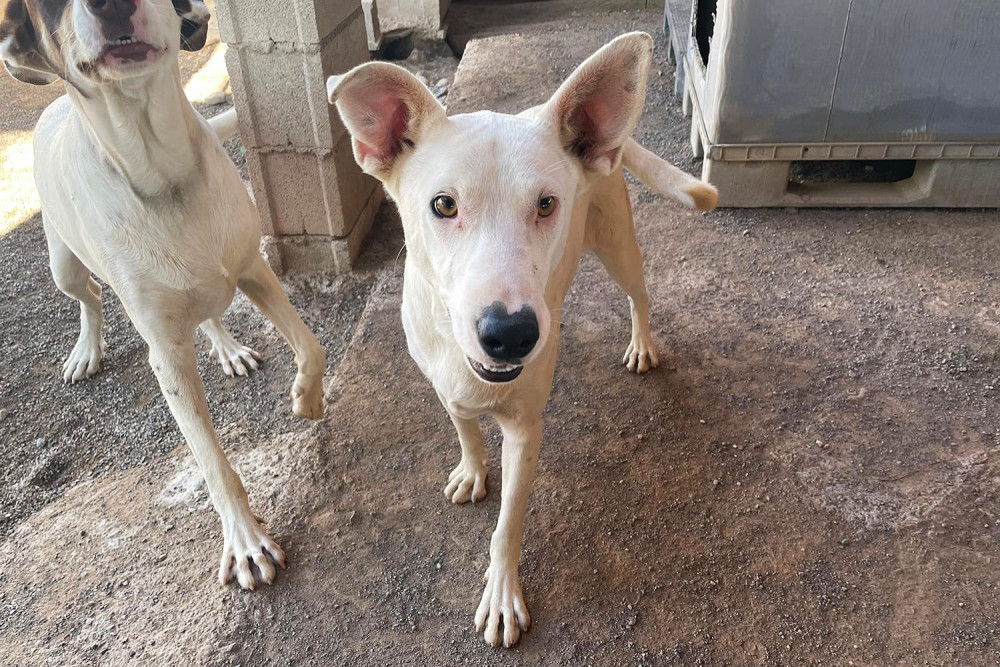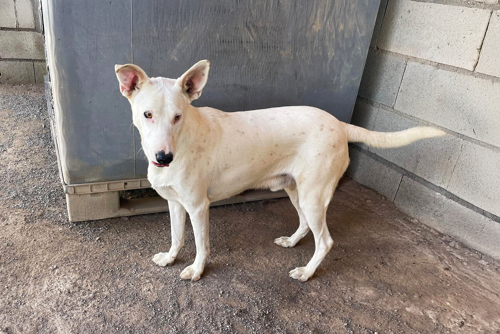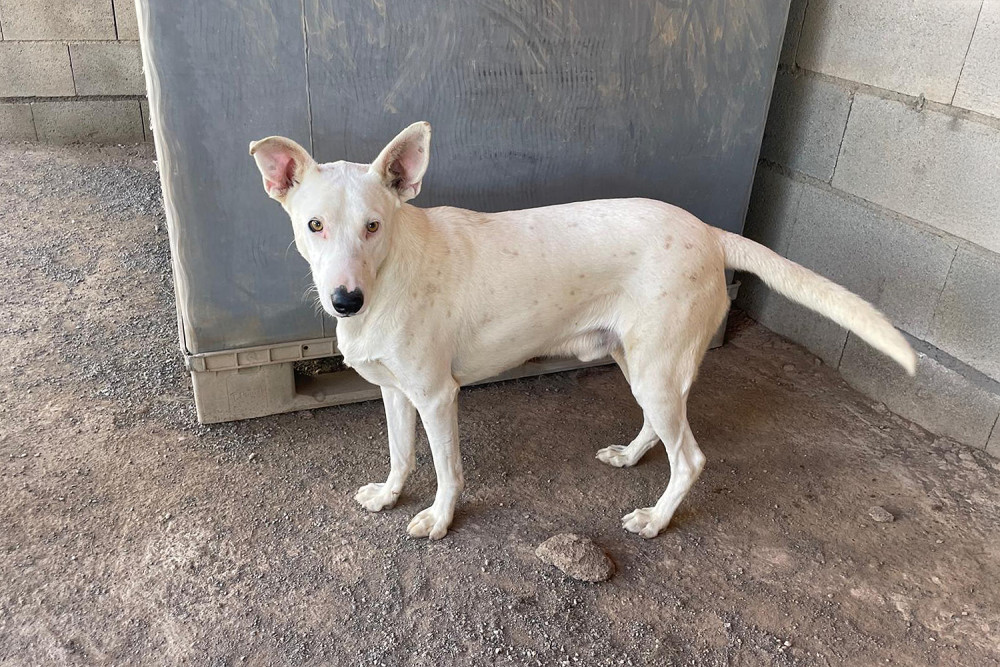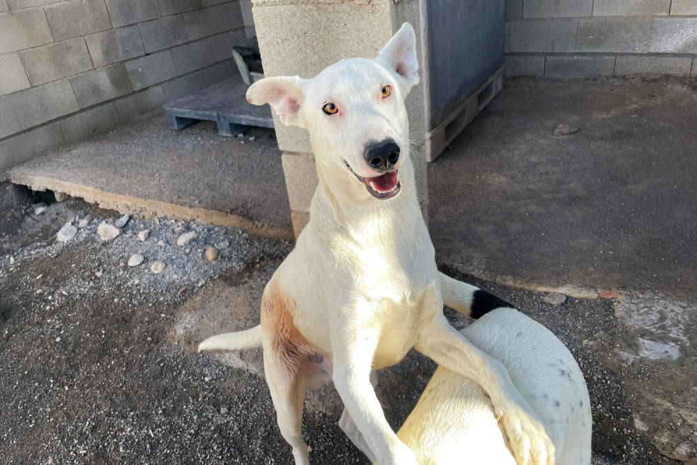 Magdaleno es un macho mestizo joven de capa blanca con pecas que llegó al refugio el 1 de noviembre de 2025. Lo hizo junto a su madre y su hermano. Es un perro simpático, de 19 kilos de peso y del cual desconocemos su historia pasada. Poco a poco se va habituando a la vida en el refugio, pero lo ideal para él es encontrar pronto una familia y salir de aquí.
