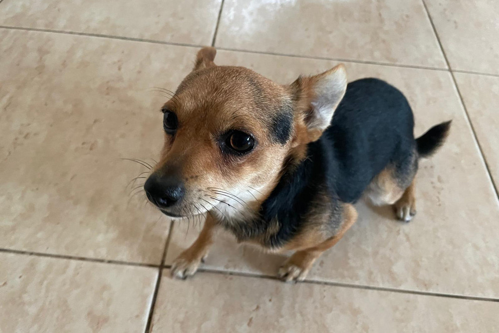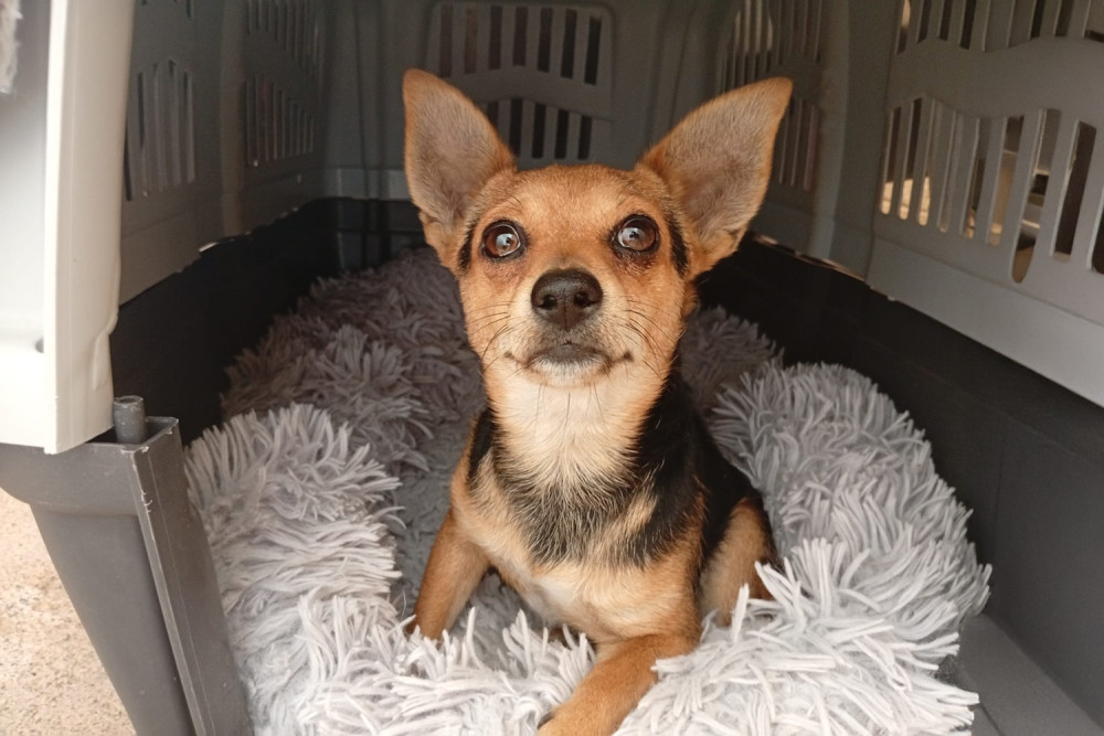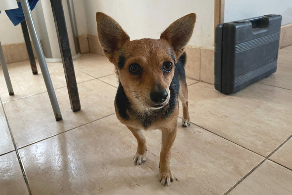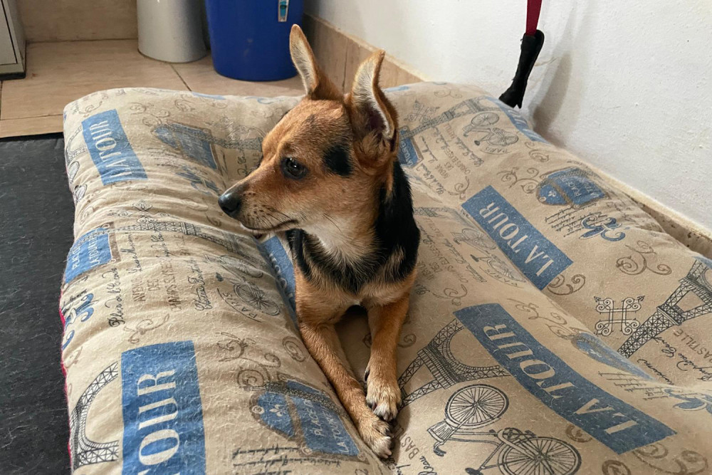 Pinky es un perro muy bueno con la gente, apenas pesa 3 kilos y aunque aún tiene algo de respeto por el resto de perros porque todos son bastante más grandes que él, no hace malos gestos a ninguno.