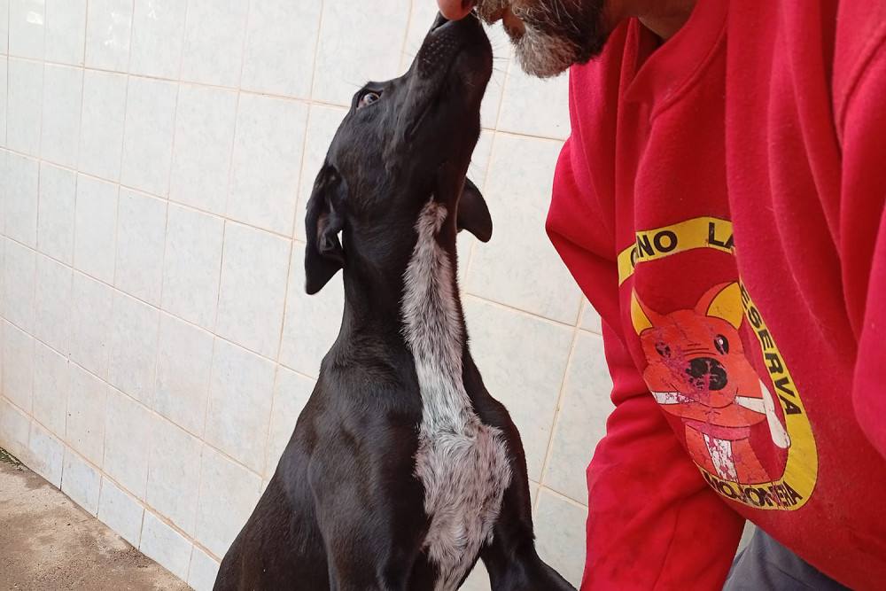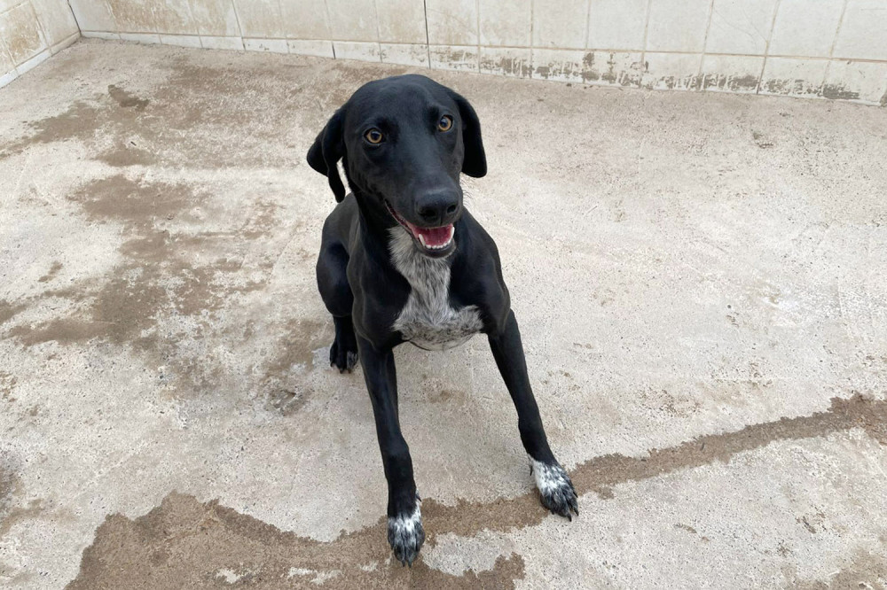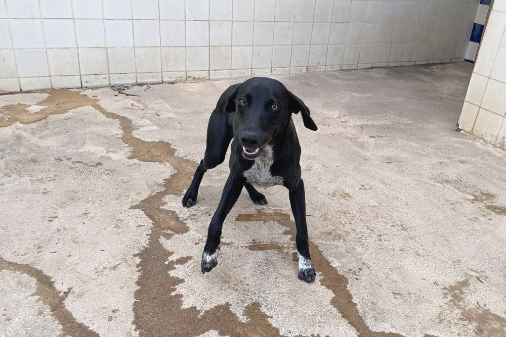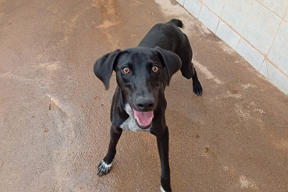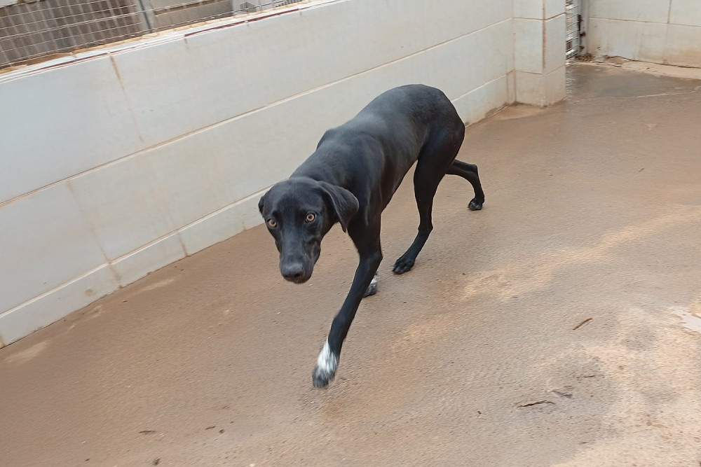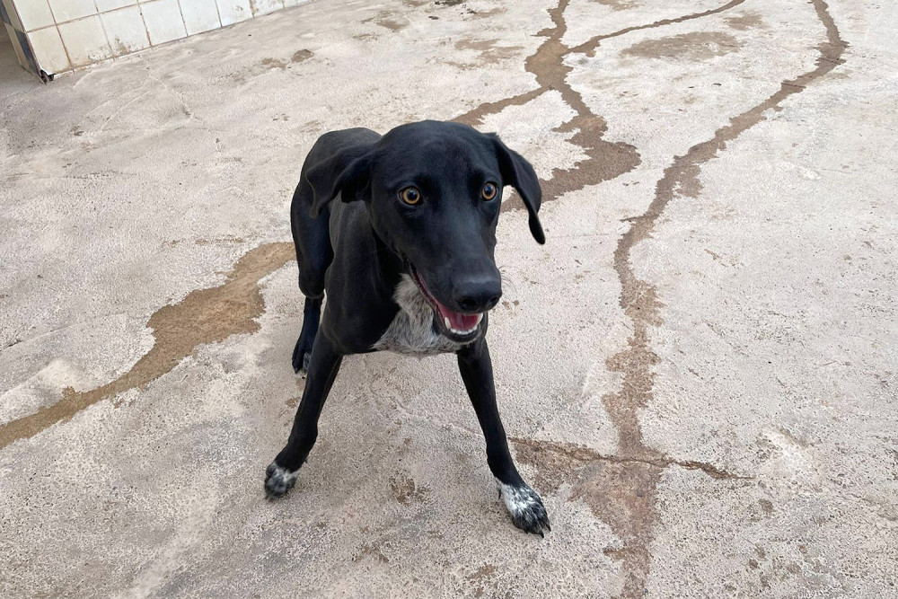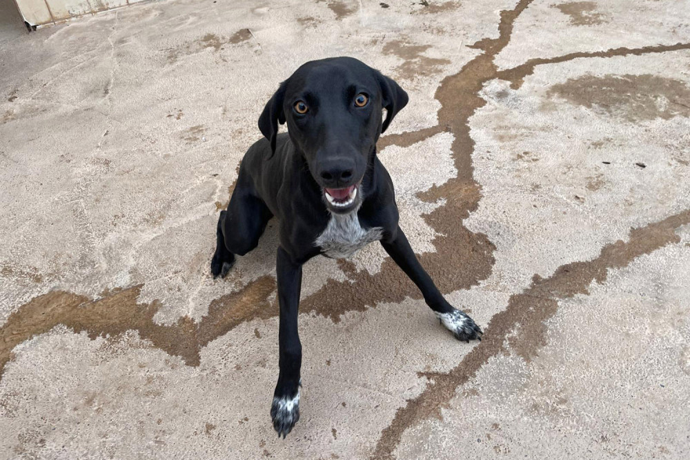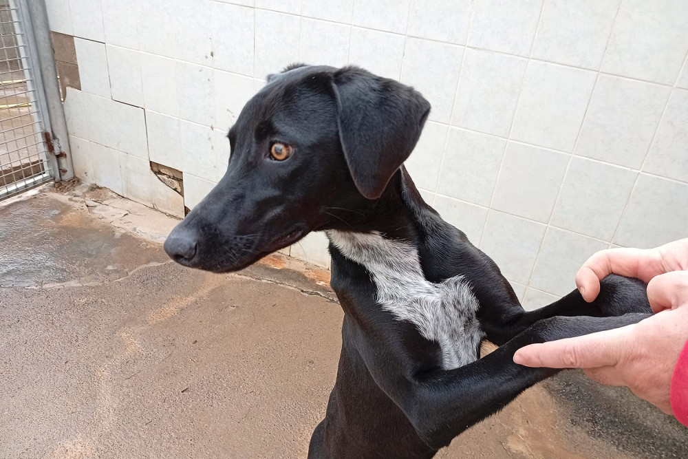 Lucy es una hembra mestiza que llegó al refugio el 10 de diciembre de 2025. Es aún cachorra con alta energía, a la que le gusta mucho la gente y que se lleva bien con todos los perros con los que ya ha compartido parcela. Tiene unos ojos muy expresivos, capa negra, pecho y manos y pies blancos jaspeados. Es un amor de perra que necesita encontrar una familia cuanto antes.