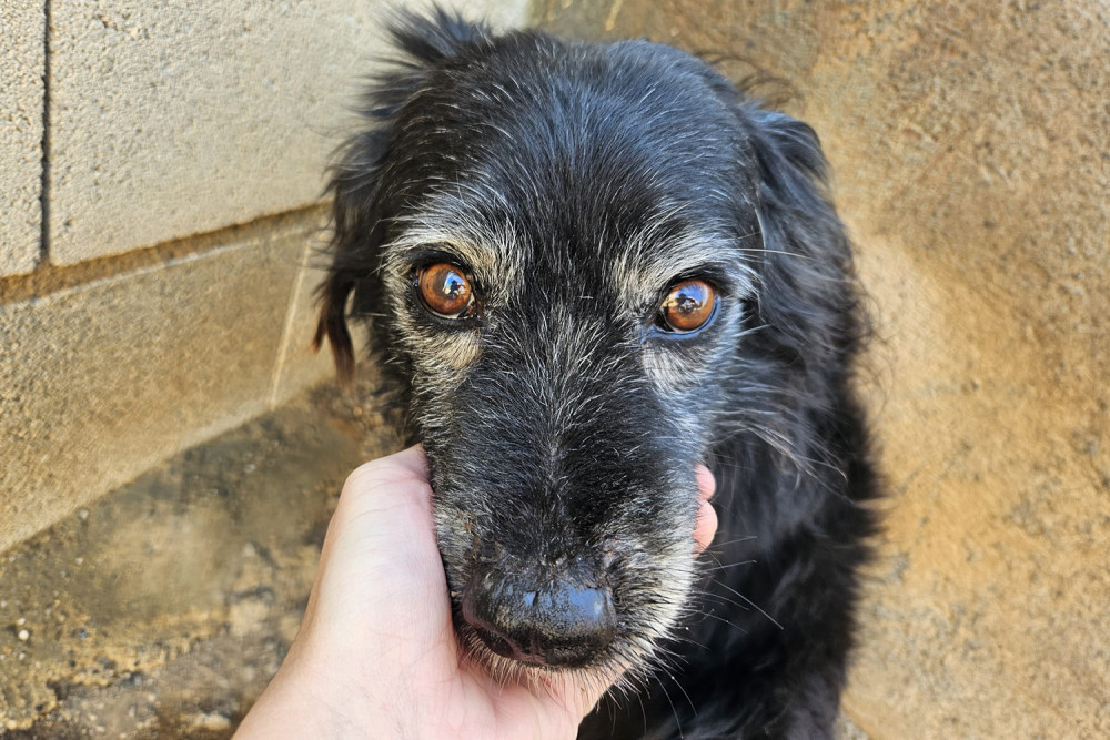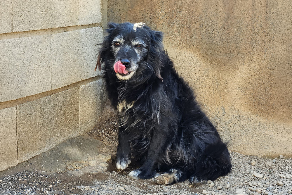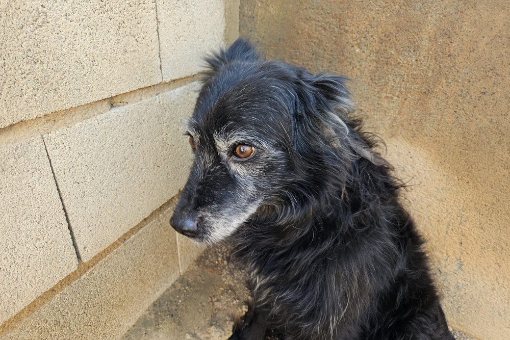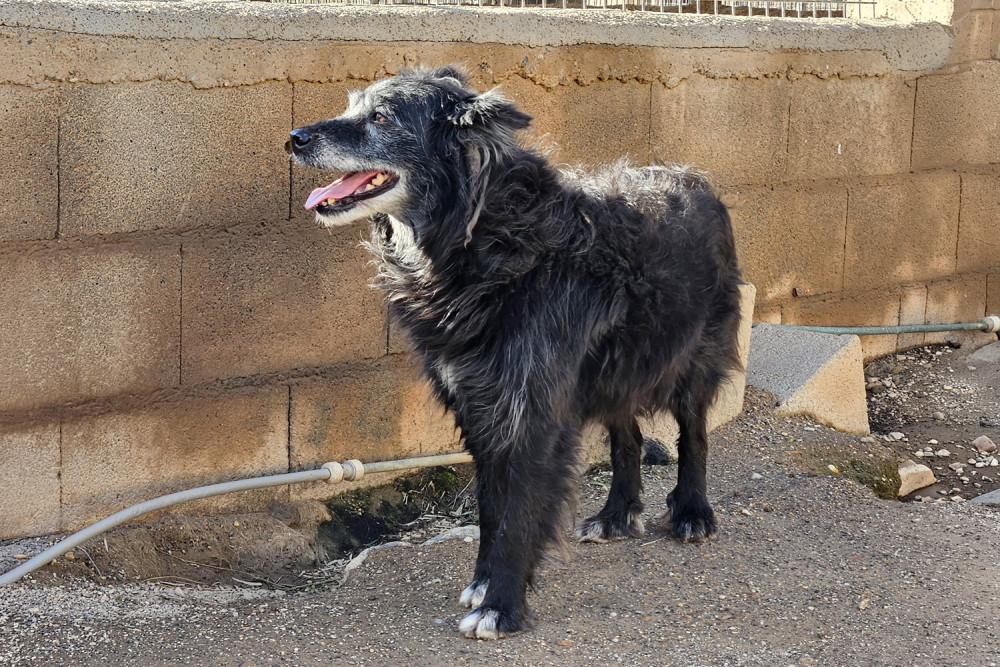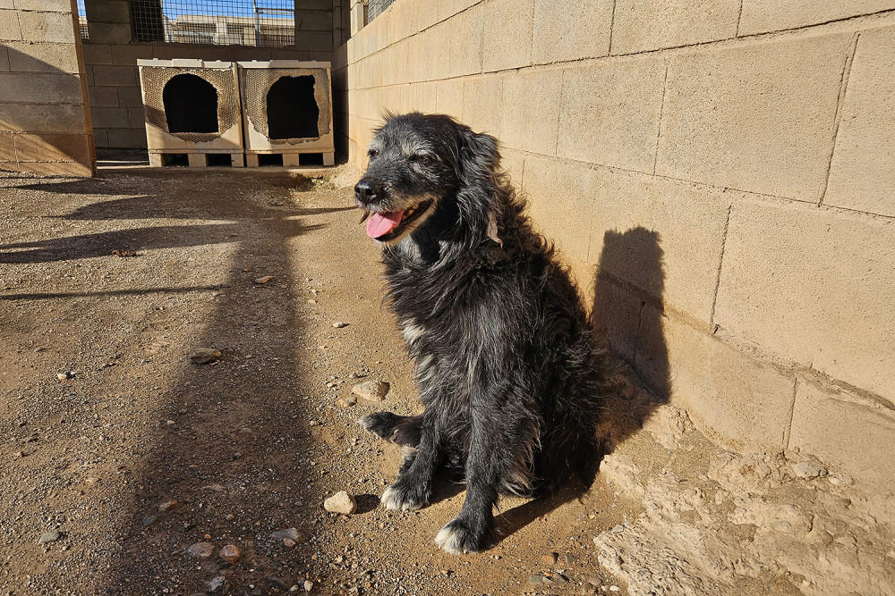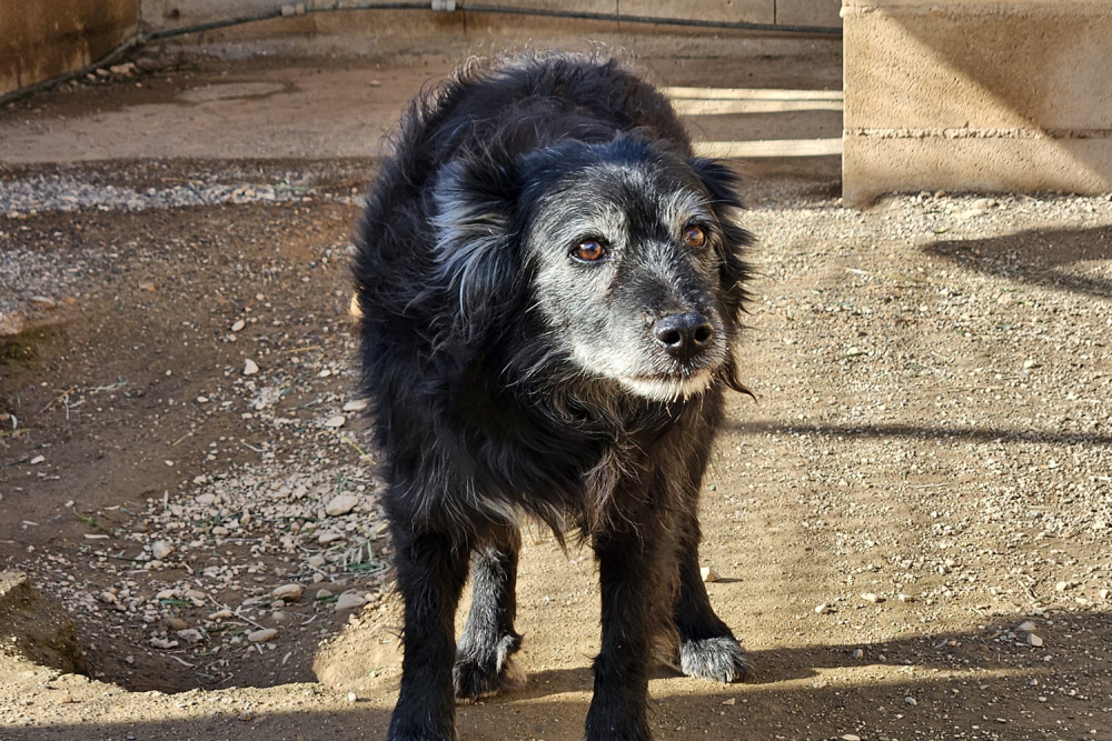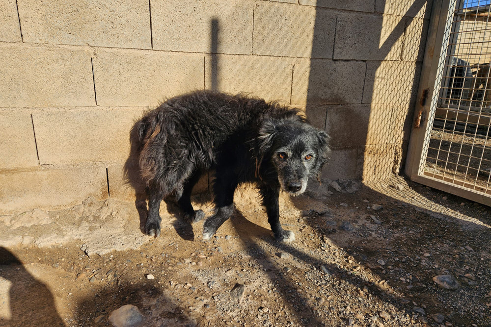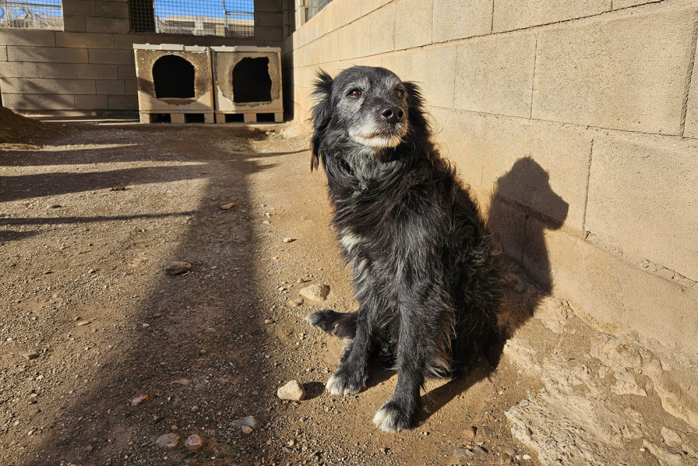Curro es un mestizo ya adulto cuya vida no ha sido fácil y que entró a formar parte del refugio el 23 de enero de 2026. Es un perro negro de pelo medio y ya con canas en cejas y morro. Sobre su carácter os podemos decir que es un perro tímido, pero increíblemente bueno. Comparte parcela con Muffin y se llevan genial. Sus fotos transmiten la ternura de quien no entiende dónde está y sus ojos piden un hogar donde le quieran y le mimen. Ojalá su futura familia le vea y se enamore del cuanto antes.